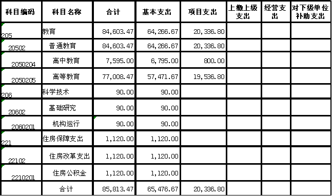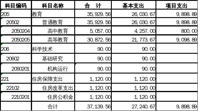 1.教育:反映教育行政管理、学前教育、小学教育、初中教育、普通高中教育、普通高等教育等方面的支出。主要为学校的日常运行支出以及完成事业发展目标的项目支出。